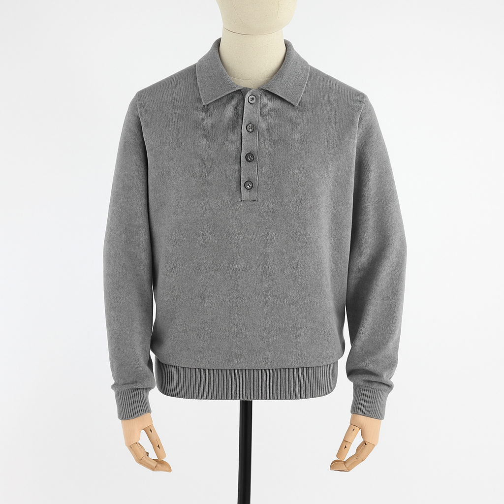 Crafted from 2-ply Cashmere or Wool. It includes a polo shirt collar and placket with 4 buttons, offering a refined and versatile look. The 1x1 ribbed cuffs and hem ensure a snug fit, providing both style and comfort. This piece combines luxury and functionality, making it a perfect addition to any collection.
