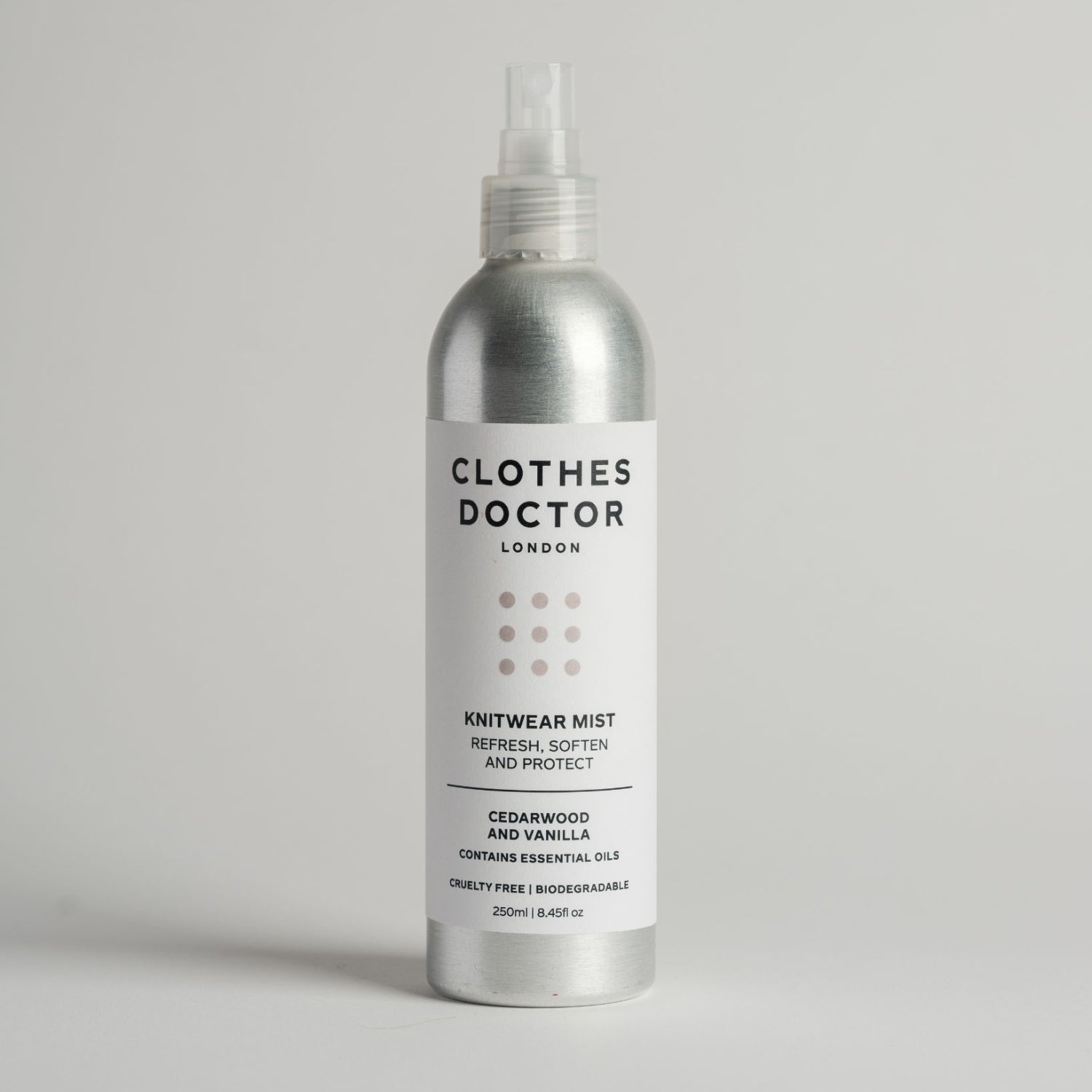 Spray regularly to enjoy an instant anti-moth effect and a quick clothing refresh—helping to reduce over washing that can lead to bobbling and wear. Thoughtfully packaged in a plastic-free, infinitely recyclable aluminium bottle, this mist is a sustainable essential for knitwear care.