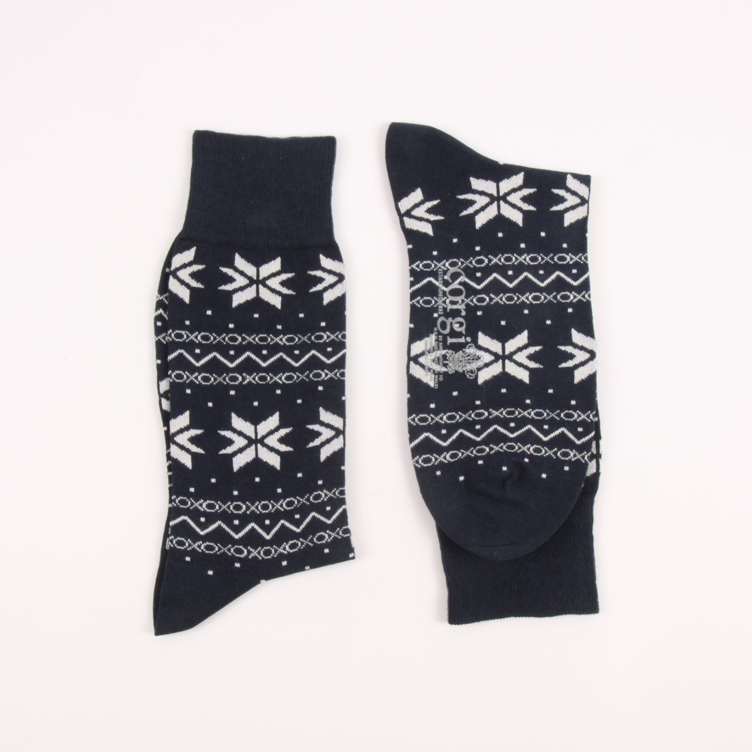 These men’s Fair Isle patterned cotton socks combine timeless style with everyday comfort. Crafted from soft, breathable cotton, they feature a classic navy base adorned with a traditional white Fair Isle design, bringing a touch of sophistication to both casual and smart looks. The socks are finished with soft ribbed cuffs for a comfortable, secure fit and are easy to care for with simple machine washing. Perfect for daily wear, thoughtful gifting, or adding a subtle festive flair to your winter wardrobe.
